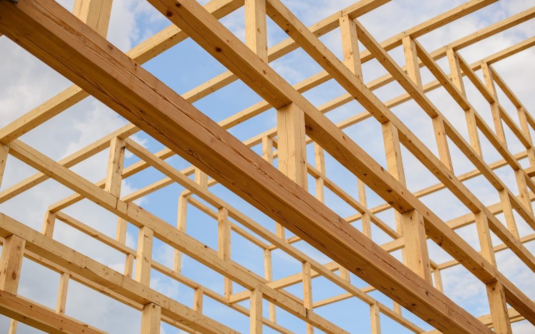 El entramado ligero es un esqueleto de montantes y travesaños de madera con panelados estructurales, aislamiento entre montantes y capas de control (aire, vapor, viento). Se industrializa en paneles y permite alto grado de personalización.